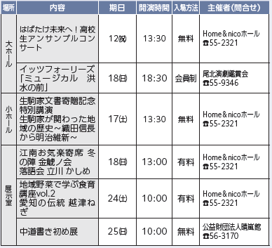 ■Home and nicoホール(午前9時~午後9時30分【電話】55-2321)