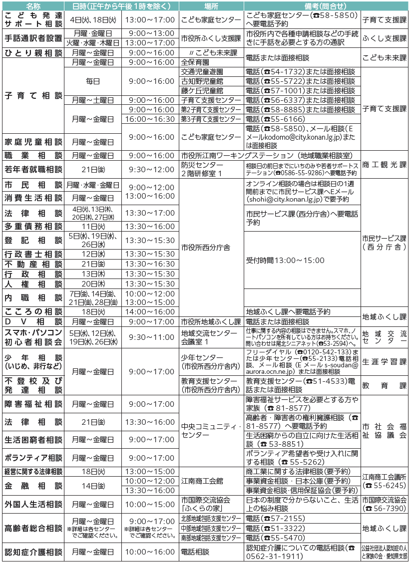 くらし 11月の相談案内 32/39 前の記事 次の記事 発行日 : 2025年11月01日 自治体名 : 愛知県江南市 広報紙名 : 広報こうなん 令和7年11月号 ※「要予約」の記載がない相談は予約不要 Tweet シェアする 情報プラス【相談】 保健センターガイド11月(1)