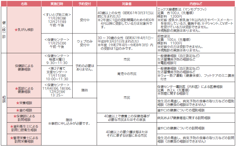 ※詳しくは市ホームページをご覧いただくか、保健センターへお問い合わせください。