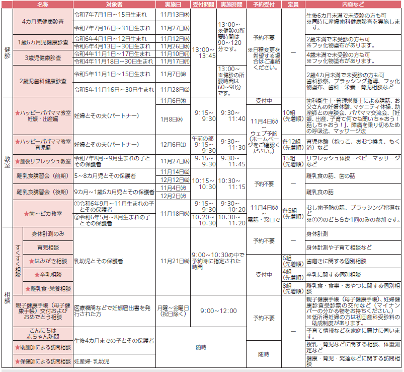 ★は予約制。予約開始日の午前9時から予約受け付けします。