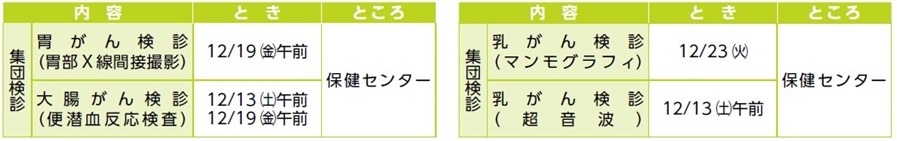 ※集団検診の申込みは、10/6(月) 8:30から申込フォームまたは保健センター