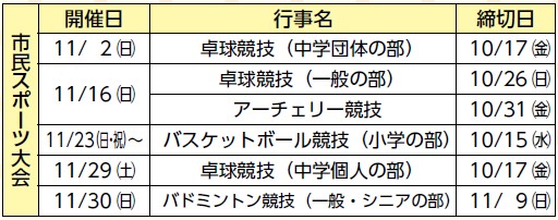 申込み:10/20(月)までに、スポーツ協会ホームページ