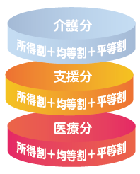 そして、医療分・支援分・介護分は、それぞれ所得割・均等割・平等割の3つで算定されます。