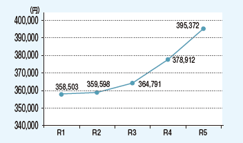 さらに、医療の高度化や加入者の高齢化などにより1人あたりの医療費が増加しており(下記グラフ参照)、新城市国保の財政運営は年々厳しくなっています。