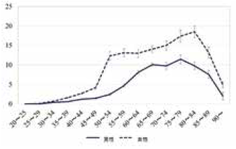 日本の年代別「鏡視下手根管開放術」の10万人あたり年間発生数