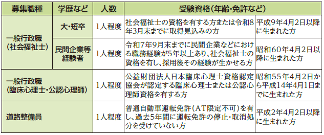 その他:受験資格や申込方法など試験の詳細は募集要項(市ホームページに掲載)でご確認ください。