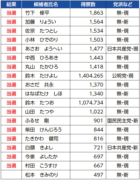 ◆新城市議会議員一般選挙開票結果(得票数順) 23:45結了