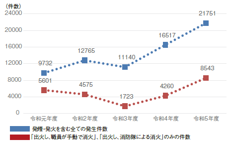 リチウムイオン電池が原因と疑われる火災件数
