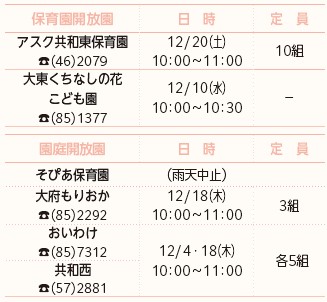 場所・申込:12/8(月)から共和西こども幸齢者交流センターへ。