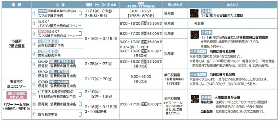 ・消費税の申告は、所得・帳簿などの状況により、パワードーム半田の申告会場(10)へ案内することがあります。