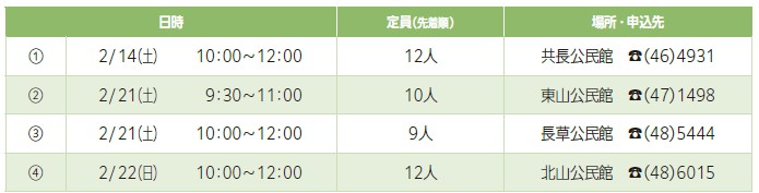講座 おひなさまに供えるお菓子 おこしものづくり教室 28/50 前の記事 次の記事 発行日 : 2026年01月01日 自治体名 : 愛知県大府市 広報紙名 : 広報おおぶ 2026年1月1日号 対象:市内在住の小学生 料金:100円(当日集金) 申込:1/7(水)9:00から市ウェブサイトへ。 Tweet シェアする 使わないけど捨てられない食器・雑貨・小型家電・衣類などリユース品として回収します スポーツ少年団 団員募集