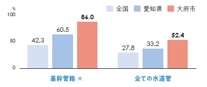 標準的な使用年数を超えた水道管の割合を表す目安です。数値が低いほど、老朽管が少ないことを示します。