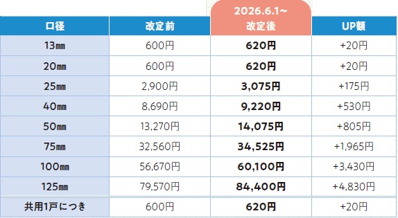 一般家庭の平均使用量:1カ月で25立方メートルの場合(税込み)