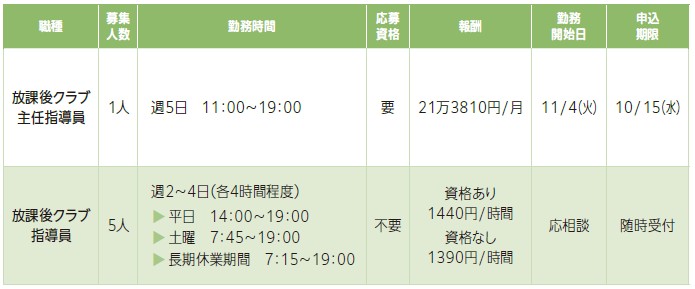勤務場所:市内放課後クラブ