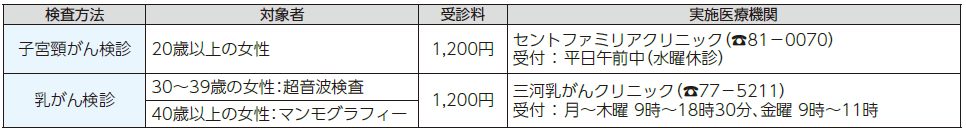 検診の詳細は広報ちりゅう4月号の折込みチラシまたは市ホームページをご覧ください。