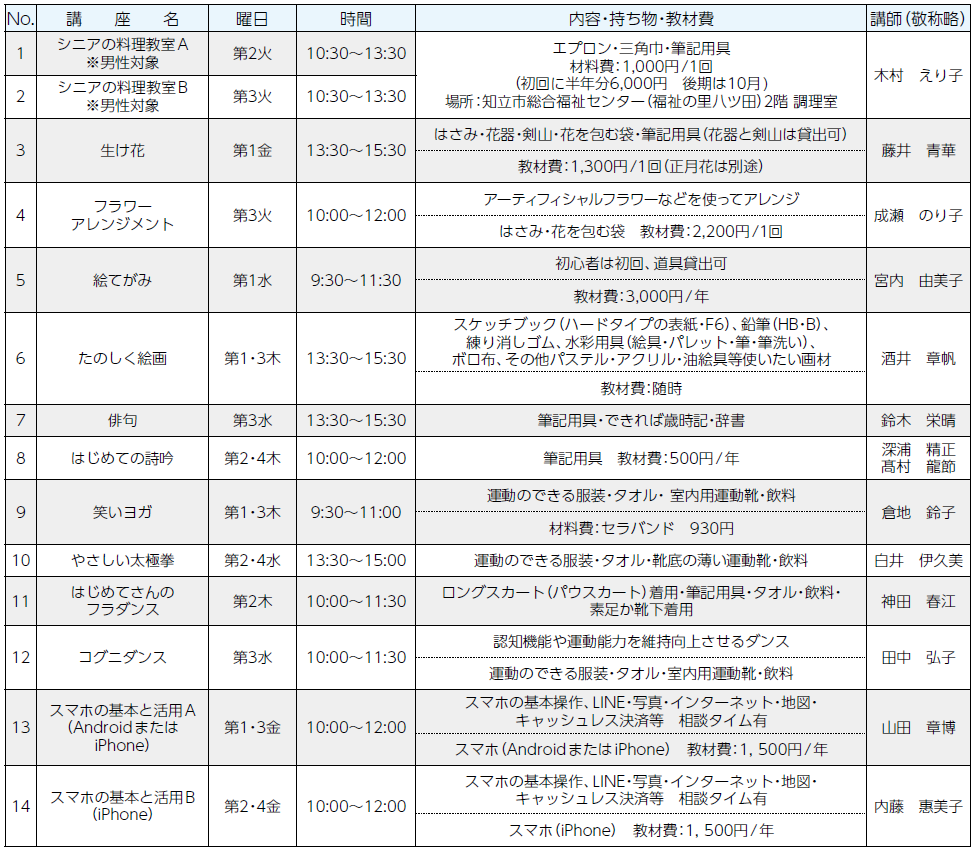 ■いきがいシニア講座(知立市在住で60歳以上の人対象 受講料 無料)