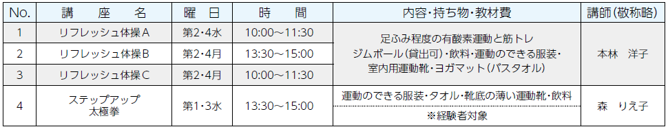 受講料:前期分(4月~9月分で月2回の講座は6,000円、月1回の講座は3,600円)を講座開始日に納入してください。講座開始日は申込時にお知らせします。後期受講料は後期初回日に集金します。