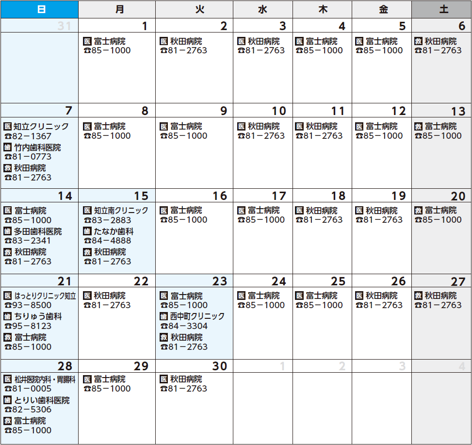 (!)当直医は都合により変更することがありますので、電話で確認のうえ受診してください。
