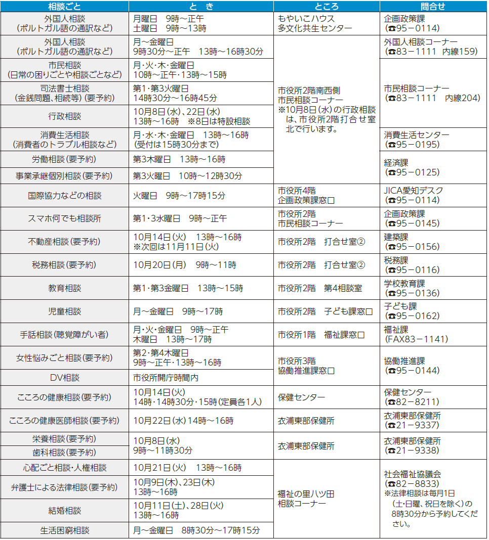 くらし 10月の無料相談 35/45 前の記事 次の記事 発行日 : 2025年10月01日 自治体名 : 愛知県知立市 広報紙名 : 広報ちりゅう 令和7年10月号 ※相談日が祝日にあたる場合はお休みになります。 Tweet シェアする 健康維持へのちょっとしたお手伝い「まちかどコラム」 今月の納税等