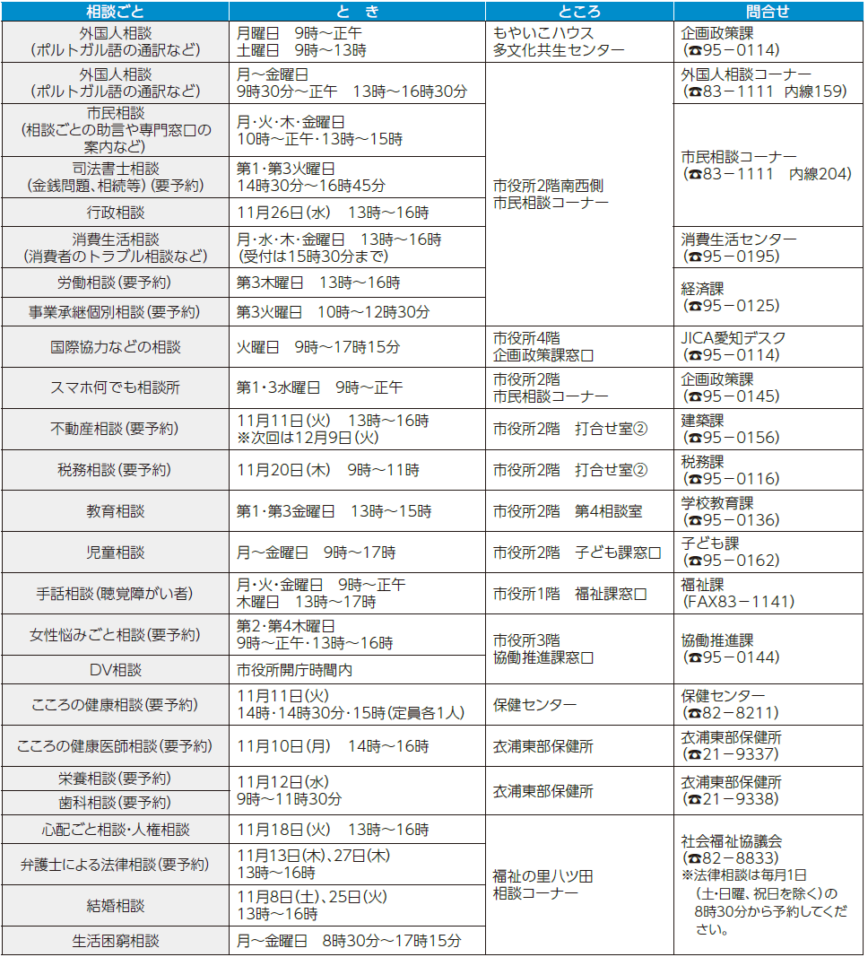 くらし 11月の無料相談 37/47 前の記事 次の記事 発行日 : 2025年11月01日 自治体名 : 愛知県知立市 広報紙名 : 広報ちりゅう 令和7年11月号 ※相談日が祝日にあたる場合はお休みになります。 Tweet シェアする シニアかわらばん 今月の納税等