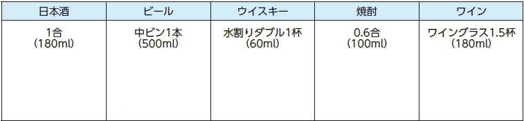 1日の適正飲酒量の目安は、男性では純アルコール20g程度、女性では10g程度です。健康に配慮した飲酒に取り組んでみませんか?