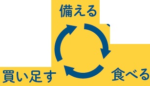 日常的に使用するものを買い置きするため、普段の買い物の範囲で備蓄ができます。また、消費と購入を繰り返すことで備蓄品の鮮度が保たれ、災害時にも日常生活と近い食生活を送ることができます。