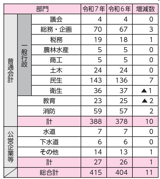(4)部門別職員数の状況(各年4月1日現在)(単位:人)