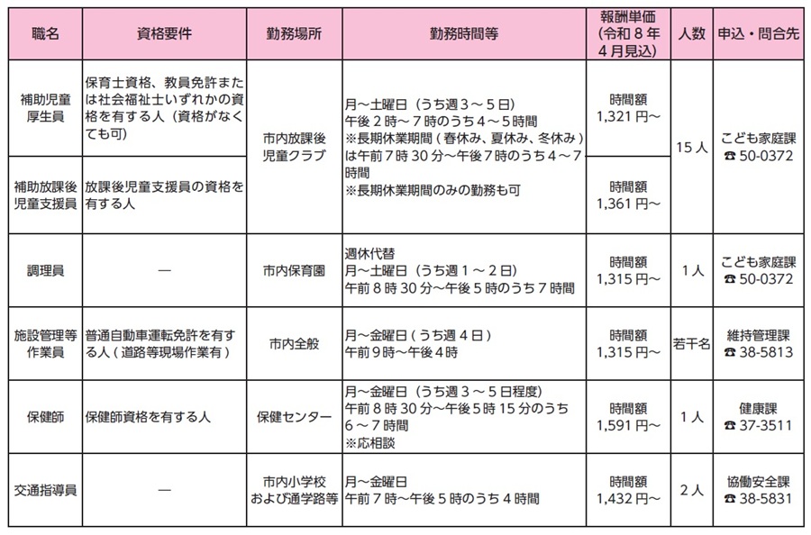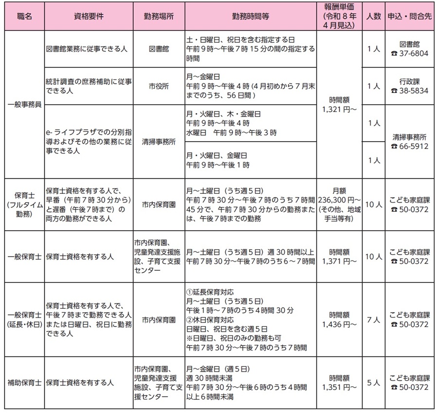 ・市ホームページに掲載されている「岩倉市会計年度任用職員応募申込書」に「履歴書」(市販でも可)を添えて、1月16日(金)〔必着〕までに以下の「申込・問合先」の部署へ郵送するか、直接窓口へ提出してください。