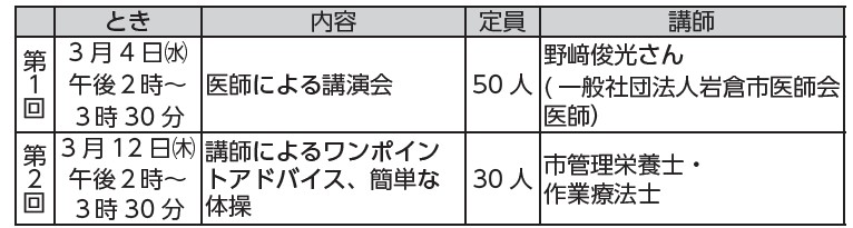 申込:2月19日(木)までに江南保健所ホームページまたは上記問合先へ電話