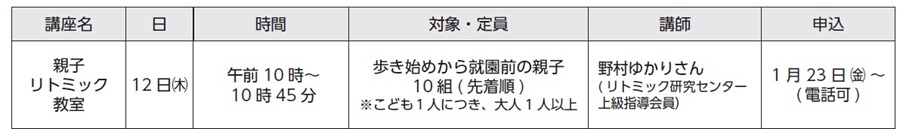 対象:受講日に3~6か月の乳児親子