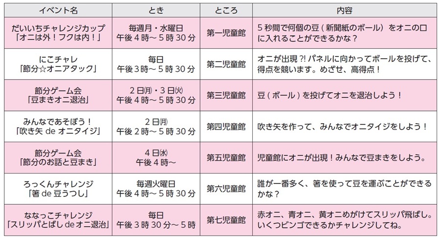 ●申込不要の児童館イベントです。詳しくは各児童館に問い合わせてください