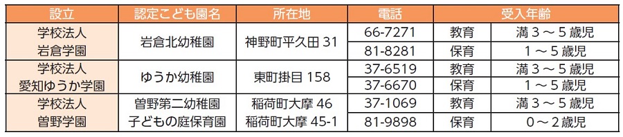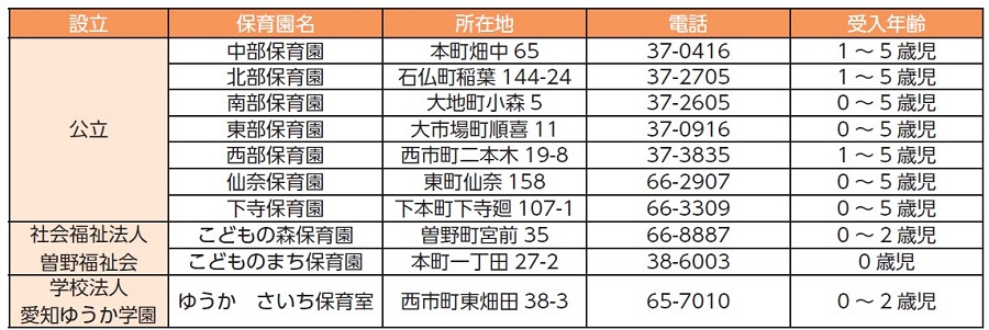 ※こどものまち保育園は小規模保育所(0歳児のみ)のため、翌年度以降は連携施設(こどもの森保育園・曽野第二幼稚園子どもの庭保育園)への入園が優先されます。