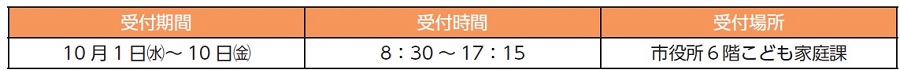 第1希望が認定こども園の場合は、下記受付期間に申込書を提出してください。