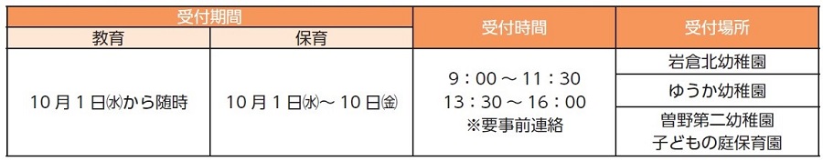 幼稚園へ入園を希望する場合は、下記受付期間に申込書を提出してください。