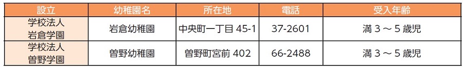 入園申込書を9月1日(月)から各幼稚園で配布します。幼稚園へ入園を希望する場合は、直接各園へ問い合わせください。