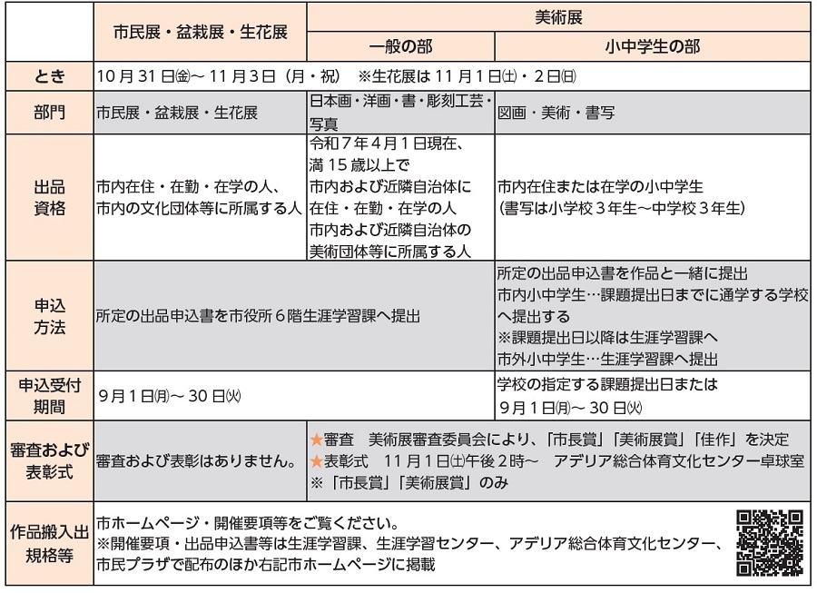 申込:9月1日(月)から15日(月・祝)までに下記二次元コードから