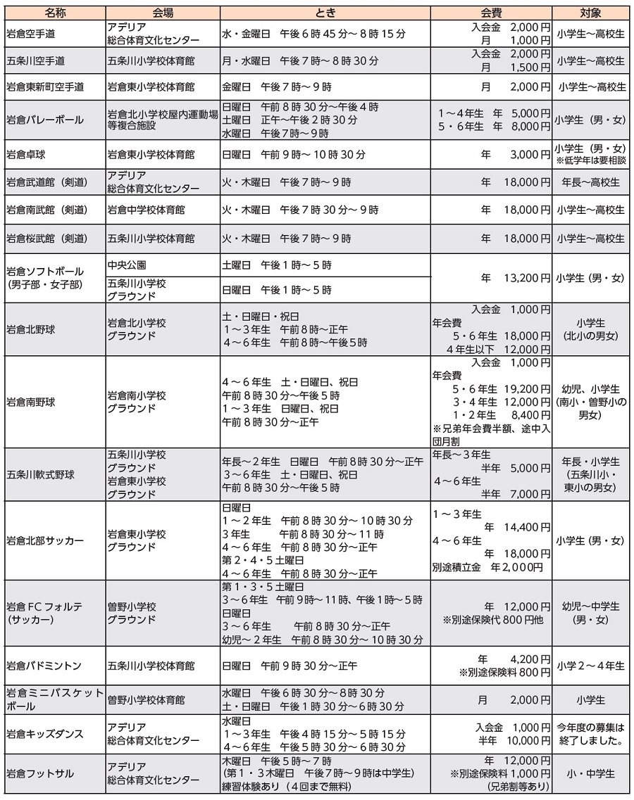 問合せ:岩倉市スポーツ少年団事務局(生涯学習課スポーツグループ内)