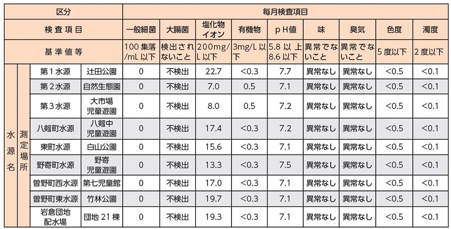 ※曽野西水源は、稼働を停止しているため検査をおこなっていません。