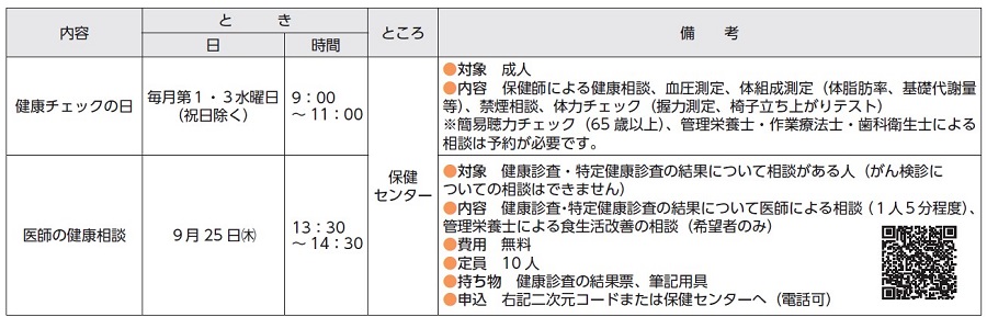 詳しくは市ホームページまたは保健センターへ問い合わせてください。