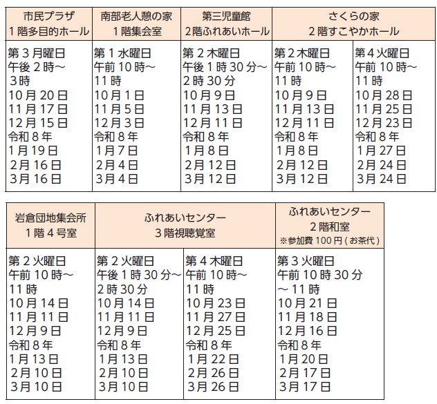日時:毎月第1・3水曜日(祝日除く)午前9時~11時
