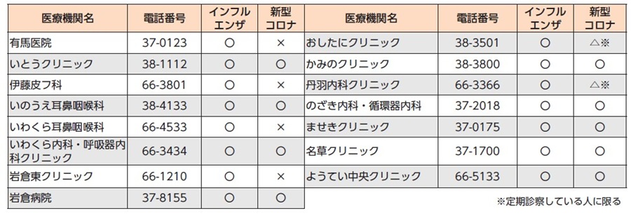 新型コロナ・インフルエンザ予防接種を実施する市内医療機関(令和7年10月現在)