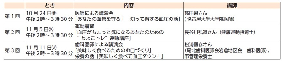 とき・内容・講師:下表のとおり