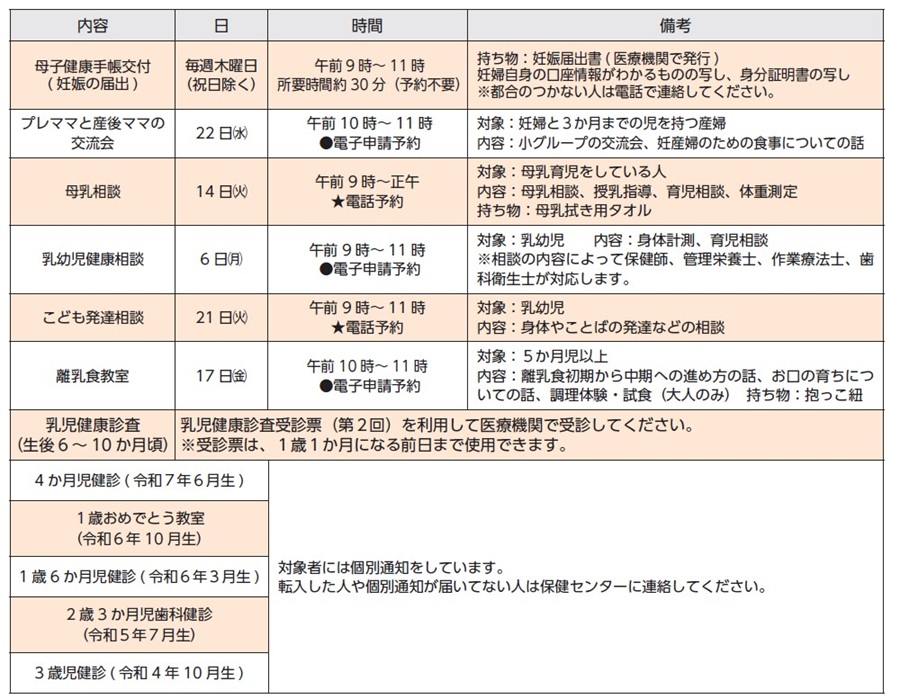 持ち物:母子健康手帳、バスタオル(おむつ替え用)