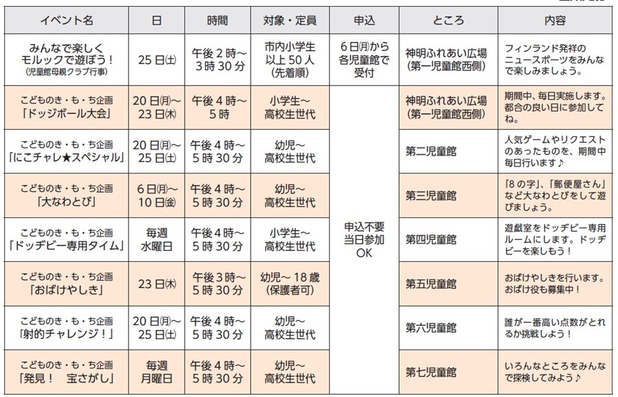 10月は意見の多かったあそびを「こどものき・も・ち企画」として実施します。
