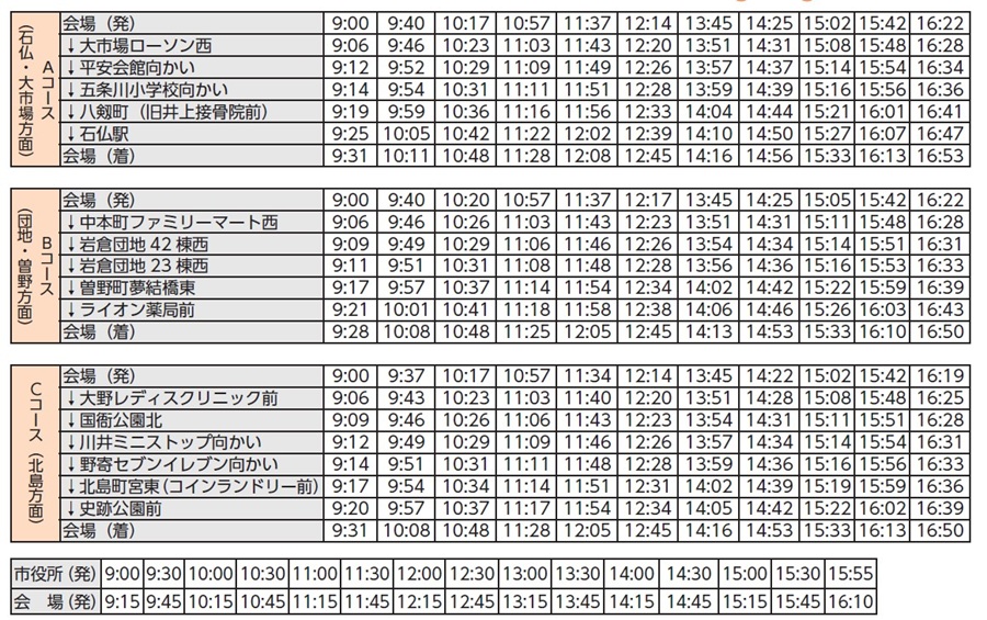 ■いわくら市民ふれ愛まつり2025 市内巡回バス時刻表
