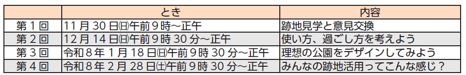 新しく整備する公園をどんな公園にしていくか?みんなで話し合い、アイデアを出し合いましょう。