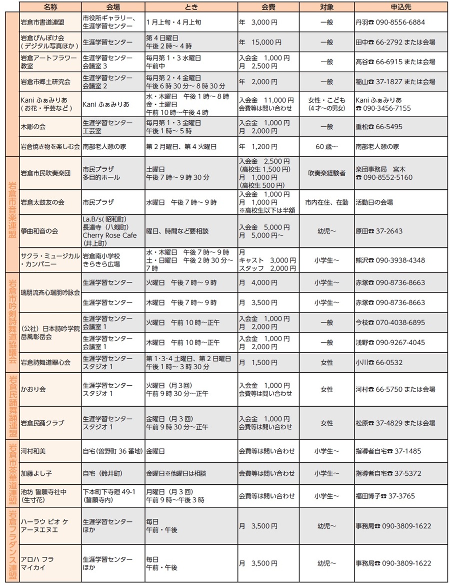 問合せ:岩倉市文化協会事務局(生涯学習課内)