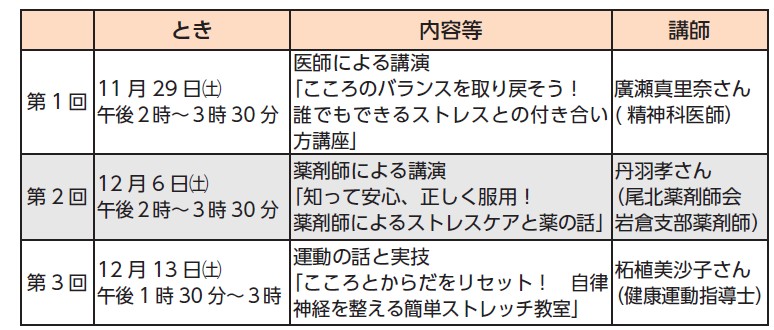 とき・内容・講師:下表のとおり