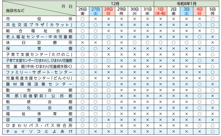 ※年末年始の休日でも、出生・婚姻・死亡などの戸籍関係の届け出は市役所で受け付けています。