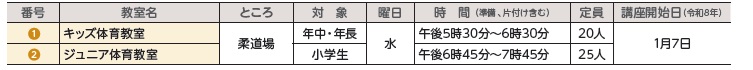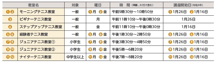 支払い:第4期硬式テニス教室、第3期体育教室のみ、12月16日(火)~25日(木)午前9時~午後8時に福祉体育館にて。